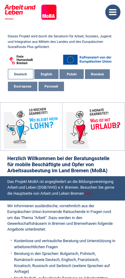 Beratungsstelle für mobile Beschäftigte und Opfer von Arbeitsausbeutung im Land Bremen (MoBA), Arbeit und Leben Bremen